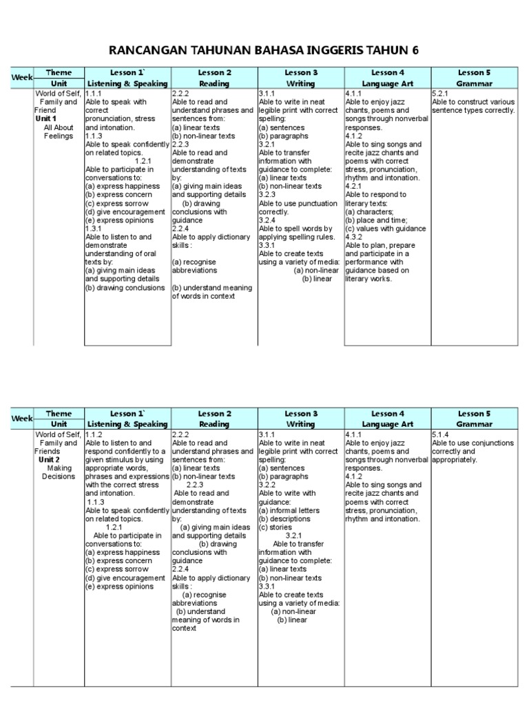 Koleksi Rancangan Pengajaran Tahunan Rpt 2019 Kssr Tahun 1 Hingga Tahun 6 Sumber Pendidikan