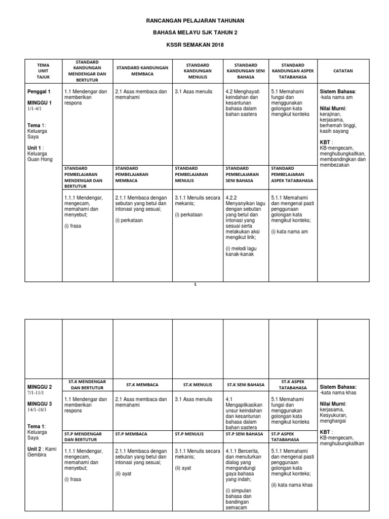Koleksi Rancangan Pengajaran Tahunan Rpt 2019 Tahun 2 Kssr Semakan Sumber Pendidikan