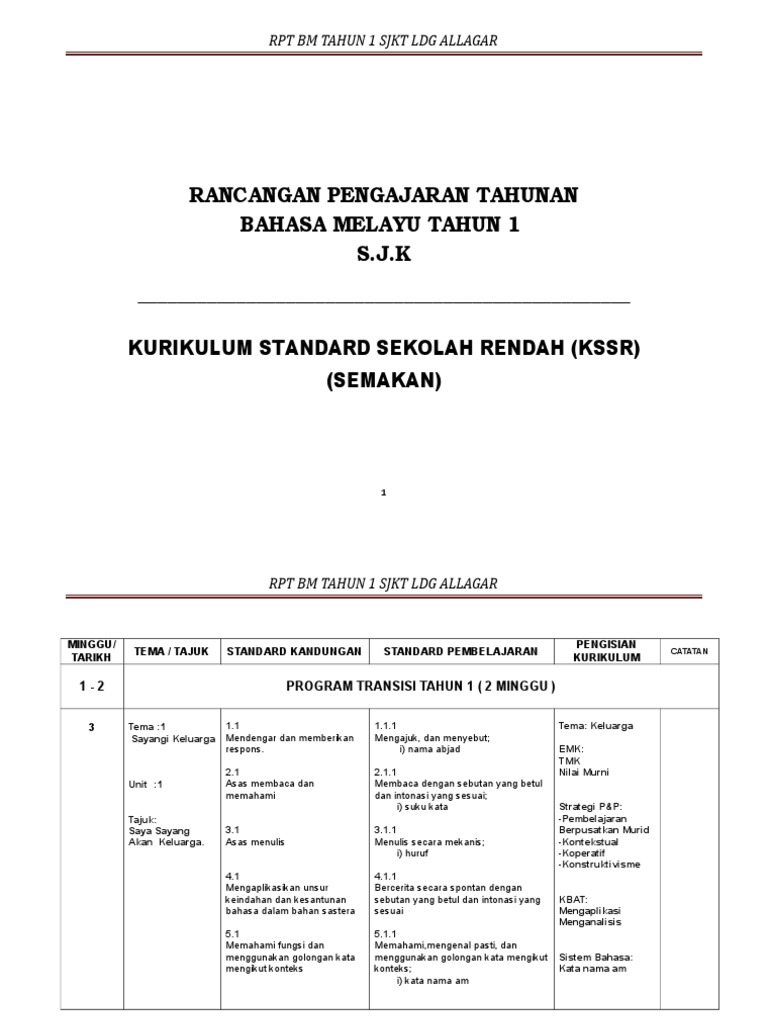 Rpt Bm Sjk Tahun 1 Kssr Semakan 2018