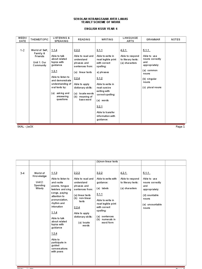 Bm Sjk Tahun 1 Kssr Semakan 2018 2 Doc Rpt Bm Tahun 1 Sjkt Karak 2018 Rancangan Pengajaran Tahunan Bahasa Melayu Tahun 1 S J K Kurikulum Standard Course Hero