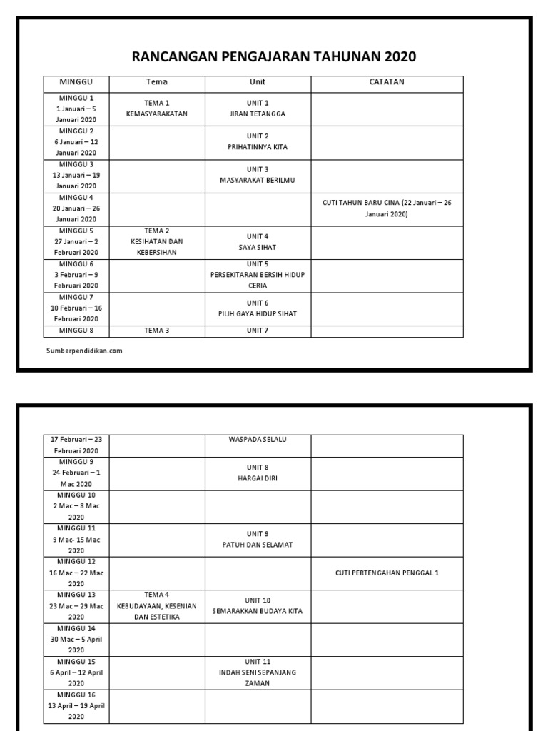 Koleksi Rancangan Pengajaran Tahunan Rpt 2019 Kssr Tahun 1 Hingga Tahun 6 Education Guru Sumber