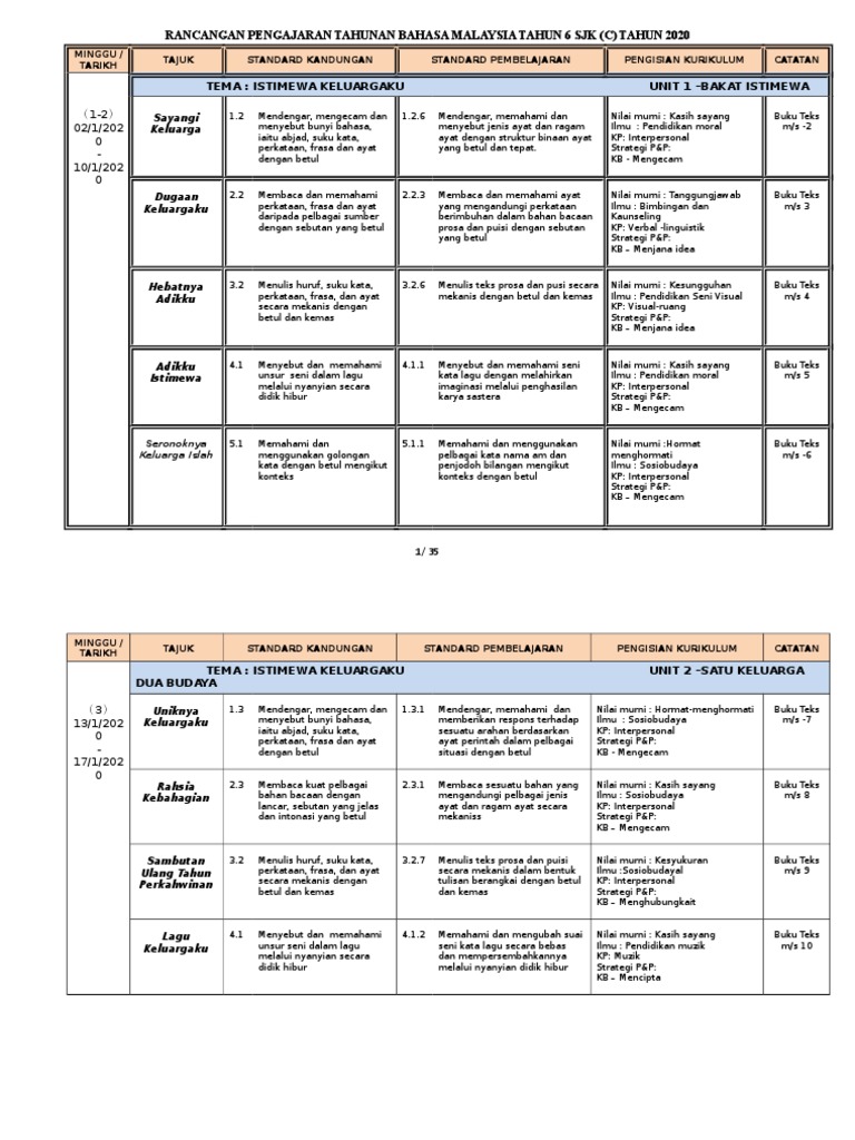 Rancangan Tahunan Bm Sjkc Tahun 6 2020