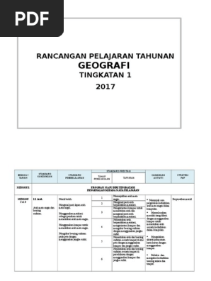 Rancangan Pengajaran Tahunan Geografi Tingkatan 1 Dan 2 Tahun 2018