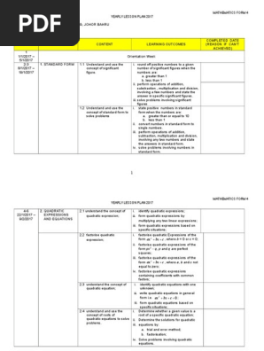 Rpt Matematik T1 2020 Baru Dlp Docx Page 1 Of 14 Smk Cochrane Yearly Lesson Plan 2020 Mathematics Form 1 Week Week 1 1 January U2013 5 January 2020 Course Hero