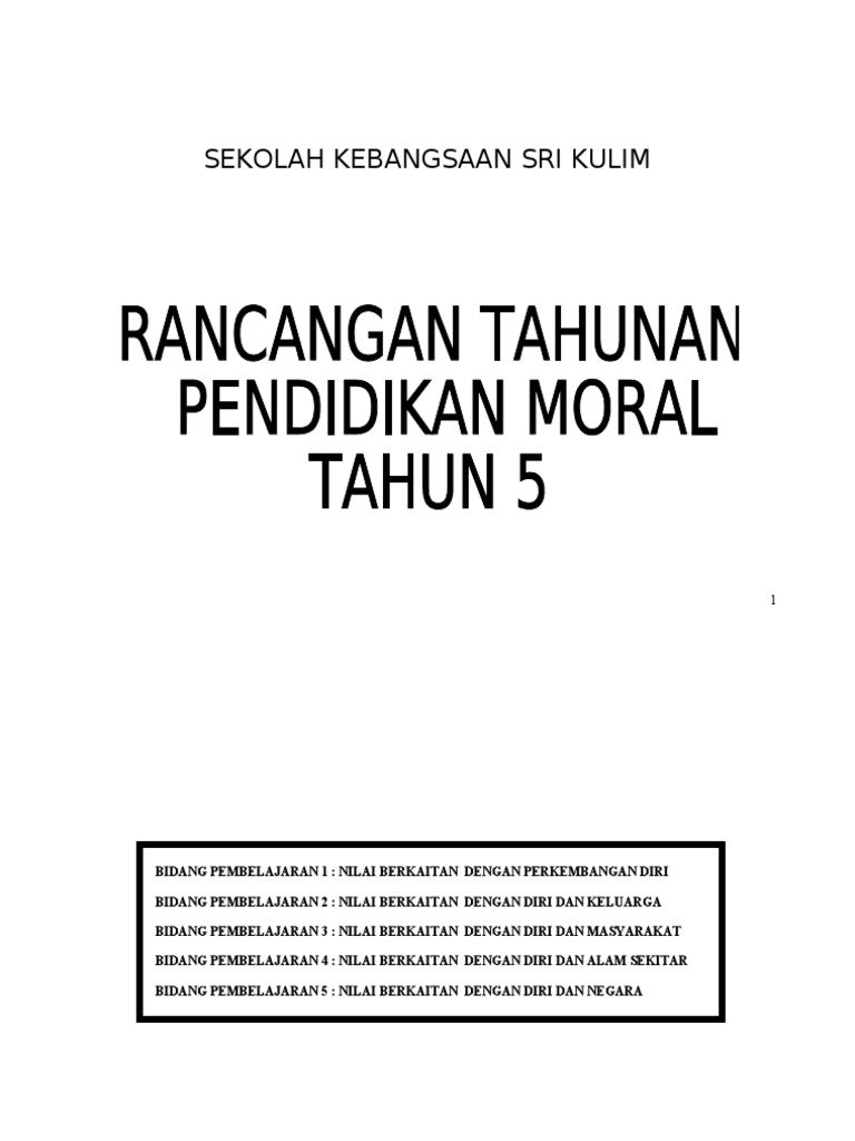 Download Rpt Pendidikan Moral Tahun 5 Bernilai Rancangan Pengajaran Tahunan Pendidikan Moral Tingkatan 1 Skoloh