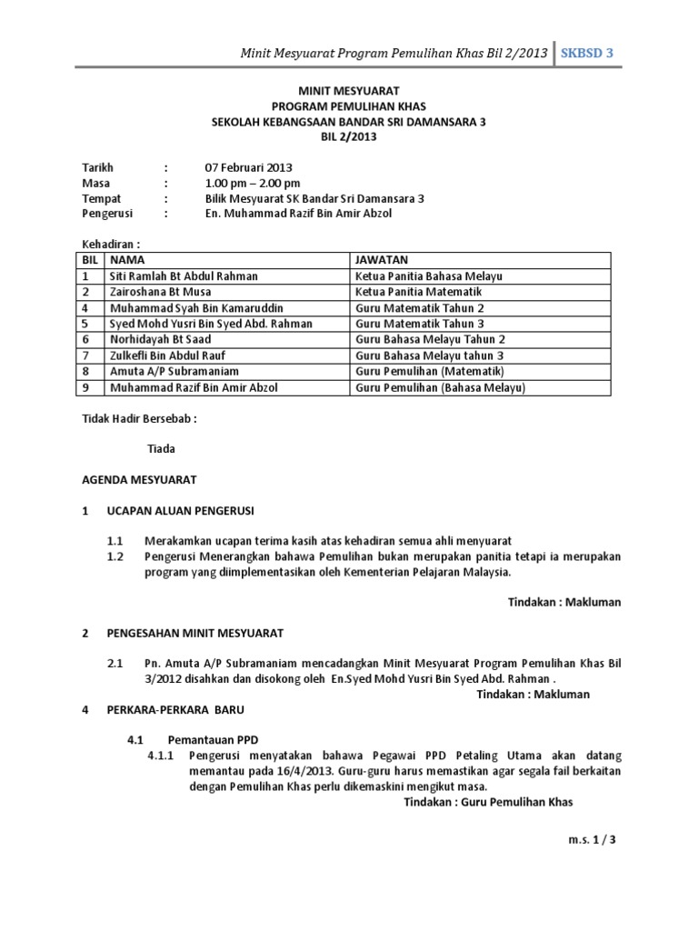 Minit Mesyuarat 2 Pemulihan Khas