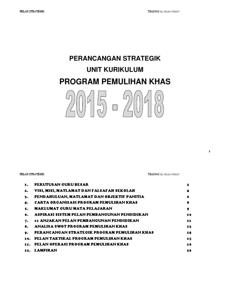 Perancangan Strategik Pemulihan Khas 2016 2019