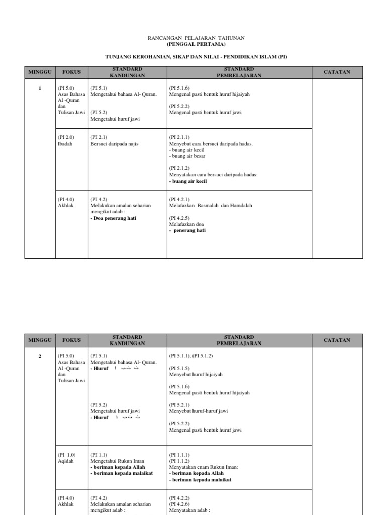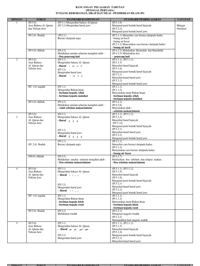 Rpt Tahun 1 Kssr Rpt Pendidikan Islam Sk Tahun 1