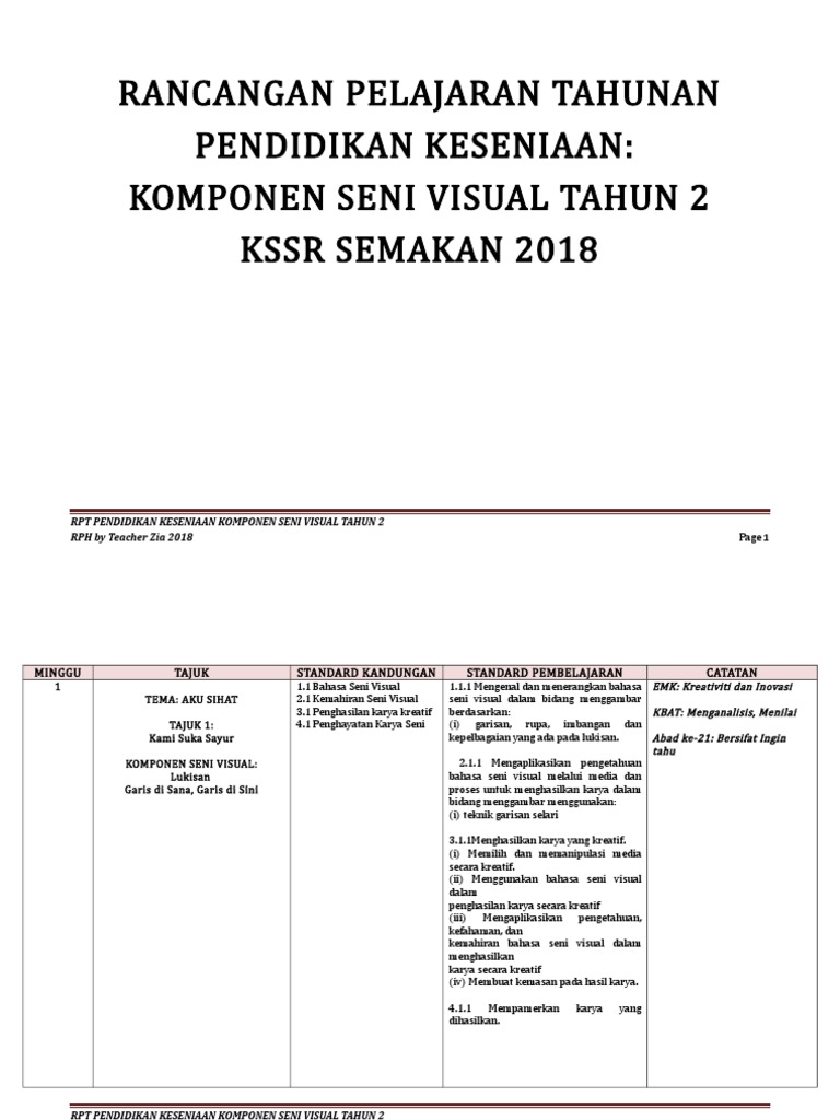Dapatkan Rpt Pendidikan Seni Visual Tahun 2 Yang Power Khas Untuk Murid Lihat Pendidikan Abad Ke 21