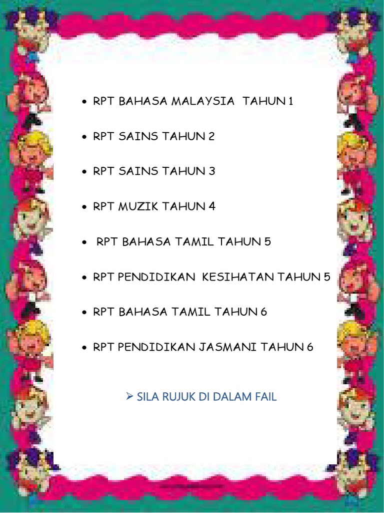 Rpt Bahasa Malaysia Tahun 1 Rpt Sains Tahun 2 Rpt Sains Tahun 3 Rpt Muzik Tahun 4 Rpt Bahasa Tamil Tahun 5 Rpt Pendidikan Kesihatan Tahun 5 Rpt Bahasa Tamil Tahun 6 Rpt Pendidikan Jasmani Tahun 6