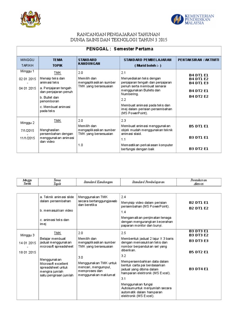 Rancangan Pengajaran Tahunan Docx Document