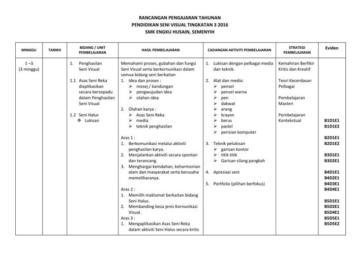 Pelbagai Rpt Pendidikan Seni Visual Tingkatan 3 Yang Boleh Di Cetak Dengan Cepat Pekeliling Terbaru Kerajaan