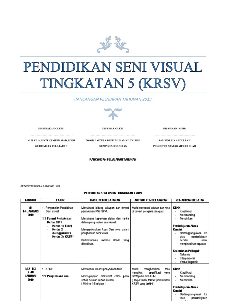 Dapatkan Rpt Pendidikan Seni Visual Tingkatan 1 Yang Dapat Di Download Dengan Cepat Skoloh