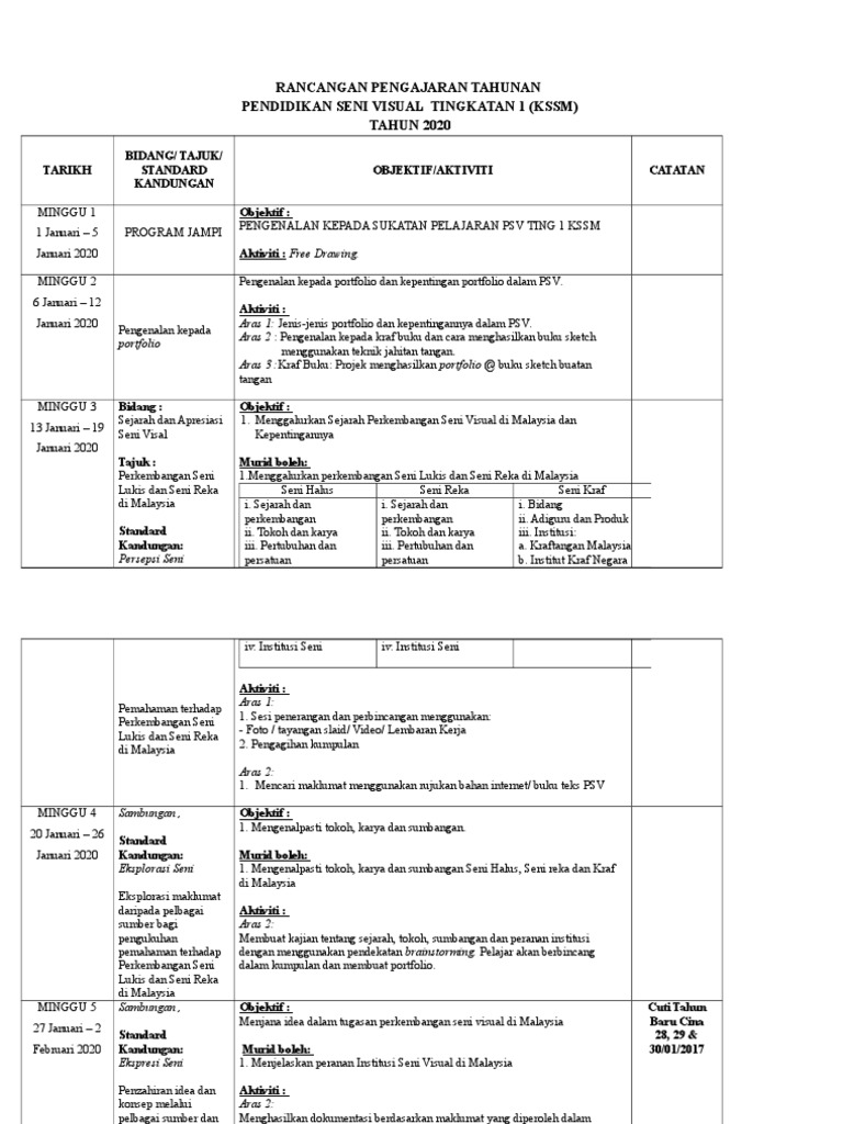 Download Rpt Pendidikan Seni Visual Tingkatan 1 Berguna Rpt Psv Tingkatan 2 2018 Skoloh