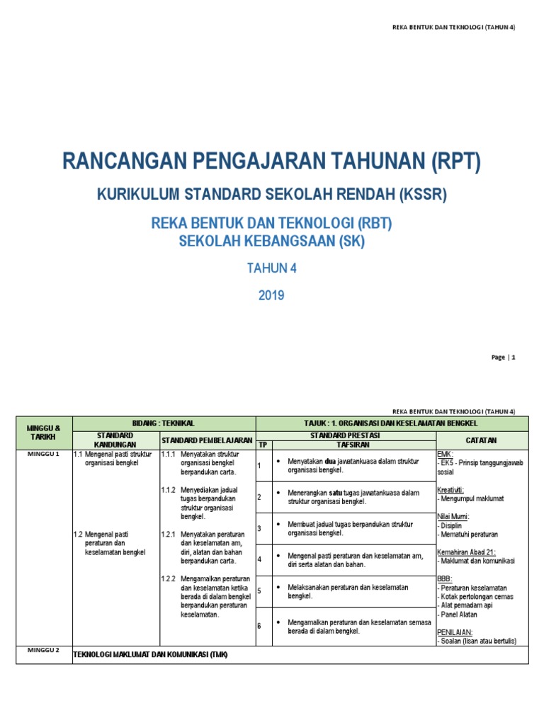 Download Rpt Reka Bentuk Teknologi Tahun 5 Meletup Rancangan Pengajaran Tahunan Kssr Matematik Tahun 1 Skoloh