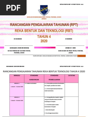 Rancangan Pengajaran Tahunan Rekabentuk Teknologi Tahun 6 Rpt Rbt Tahun 6 2020 Cikgu Suffi Cs