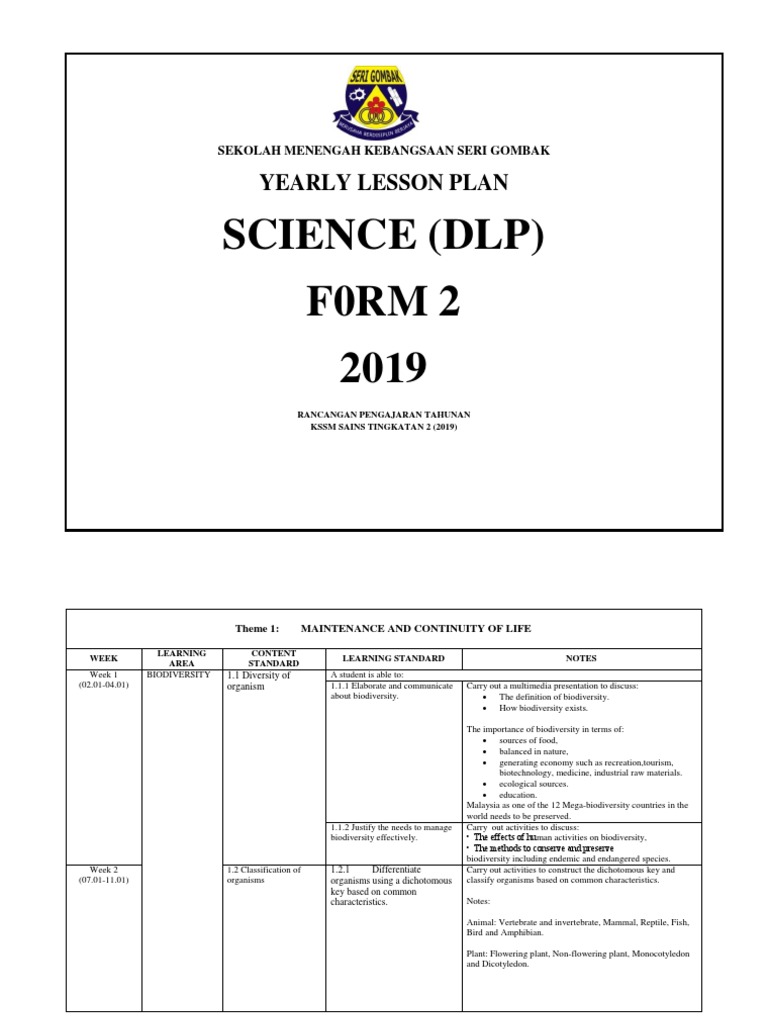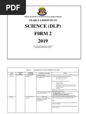 Yearly Plan For Science Form 1