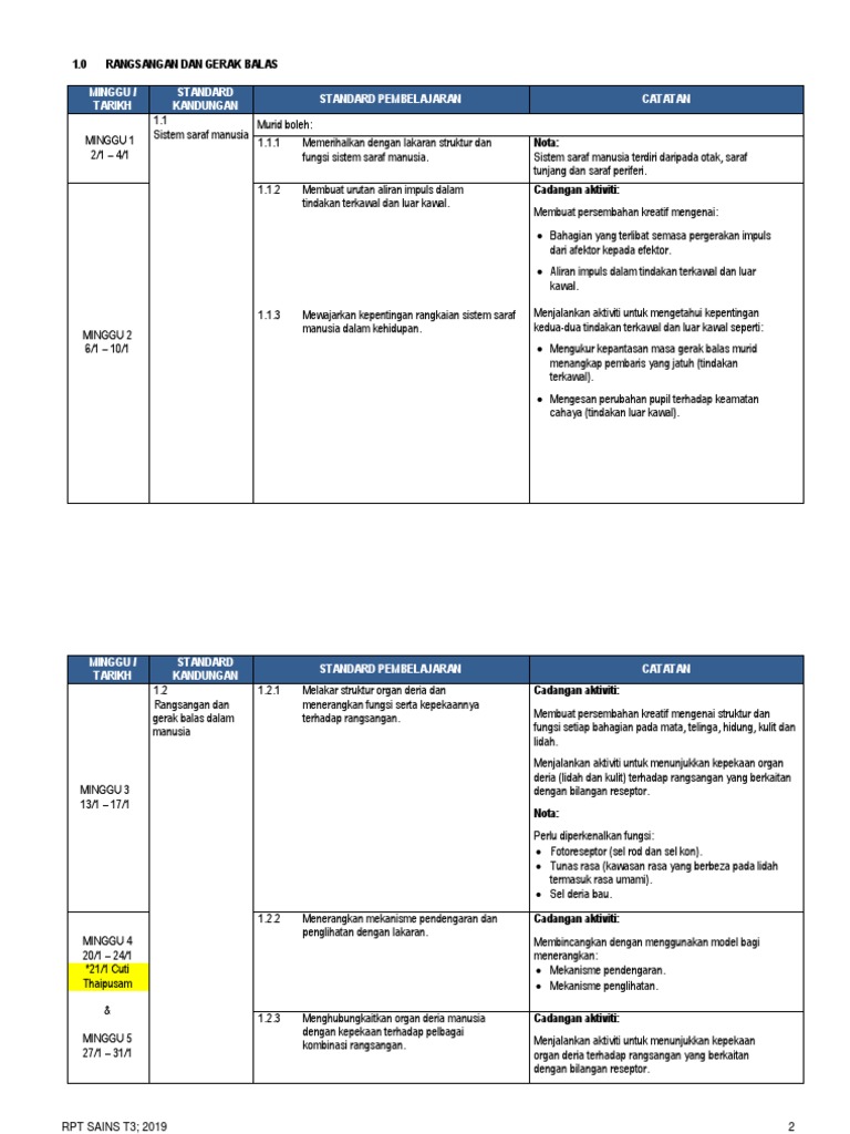 Rpt Rancangan Pengajaran Tahunan Tingkatan 3 Semua Subjek