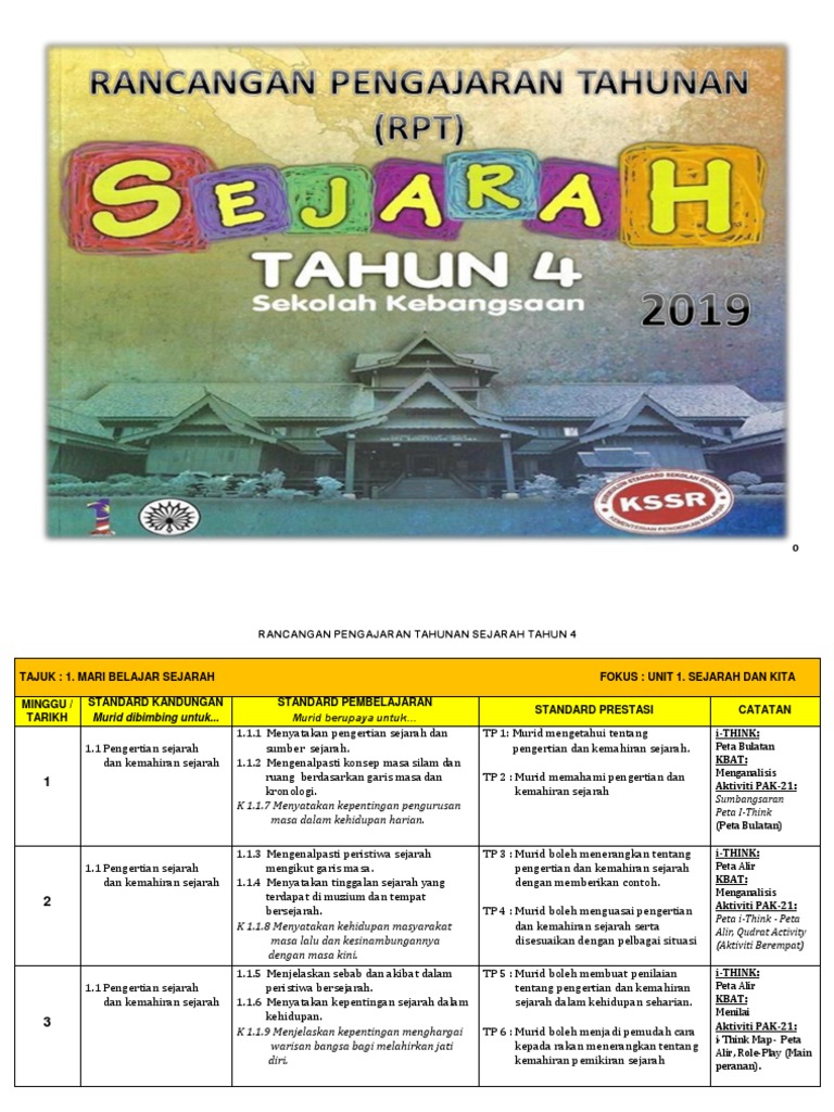Rancangan Tahunan Rpt Sejarah Tahun 4 Sejarah Tahun 5 Dan Sejarah Tahun 6 Blog Sejarah Rendah
