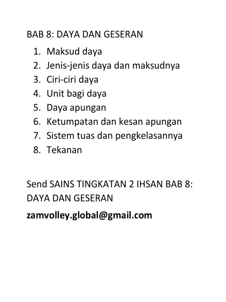 Sains Tingkatan 2 Bab 8 Daya Dan Gerakan