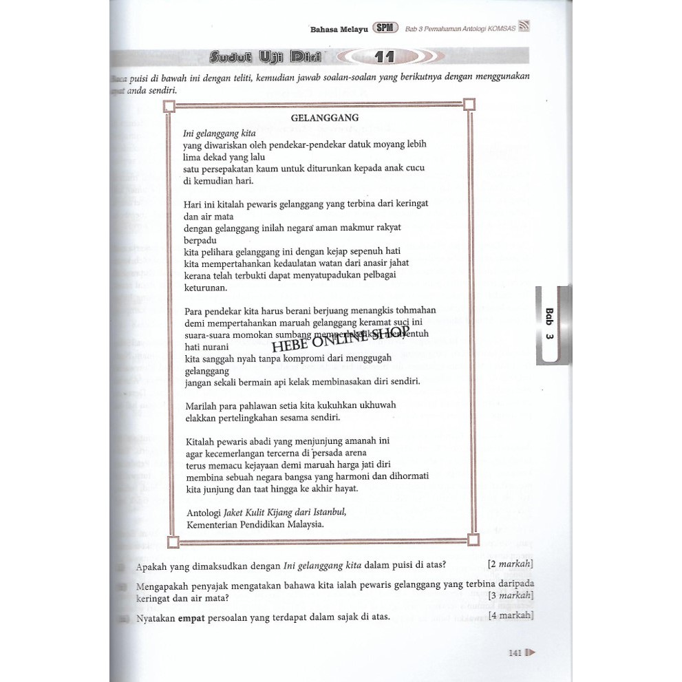 Sajak Gelanggang Tingkatan 4 Soalan