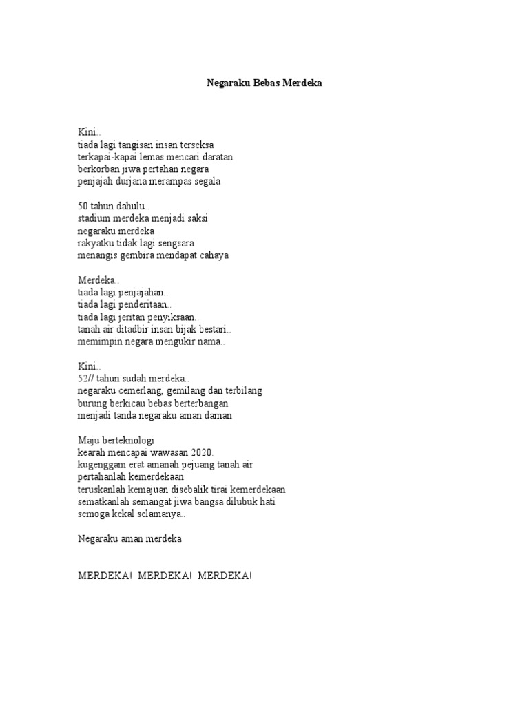 Koleksi Sajak Sajak Merdeka Smk Toh Johan Trong Perak
