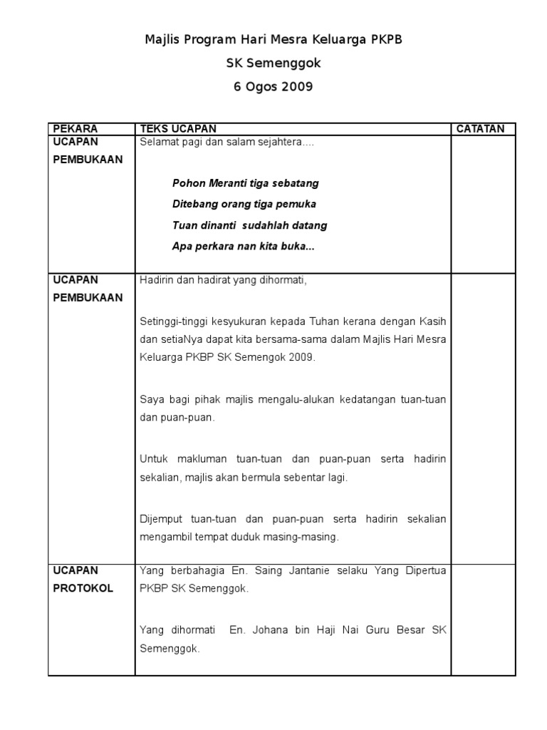 Teks Ucapan Pengacara Majlis Pendaftaran Tingkatan 1 Docx