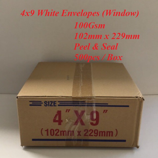 4x9 White Envelopes Window Peel Seal 100gsm Sampul Surat Putih Bertingkap 500pcs Box 102mmx229mm Shopee Singapore
