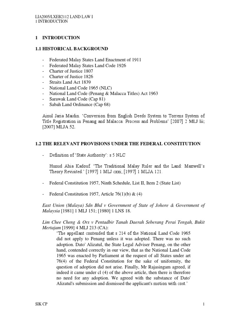 Structureof Land Law In Malaysia Land Law Udl3612 Mmu Studocu