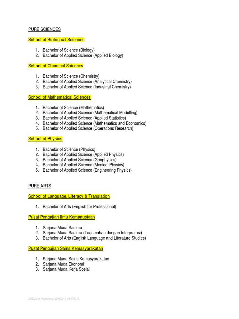 List Of Programmes Latest Usm Engineering Bachelor Of Science