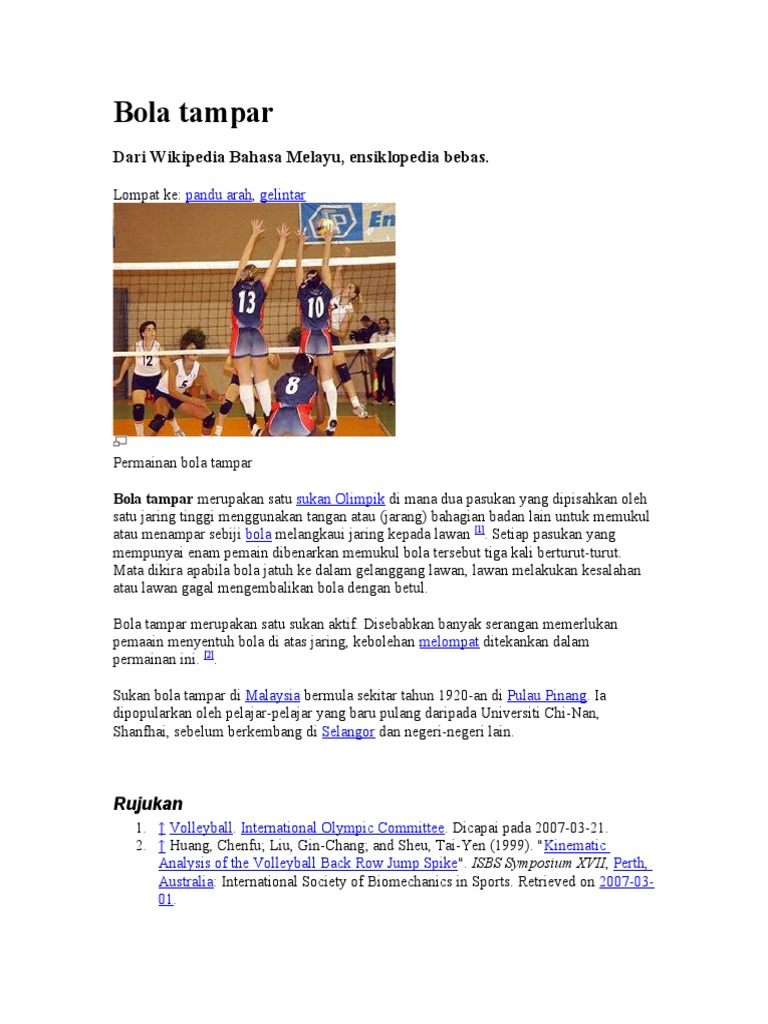 Bola Tampar Wikipedia Bahasa Melayu Ensiklopedia Bebas