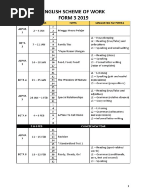English Scheme Of Work Form 3 2019 Week Dates Topic Suggested Activities Syntax Human Communication