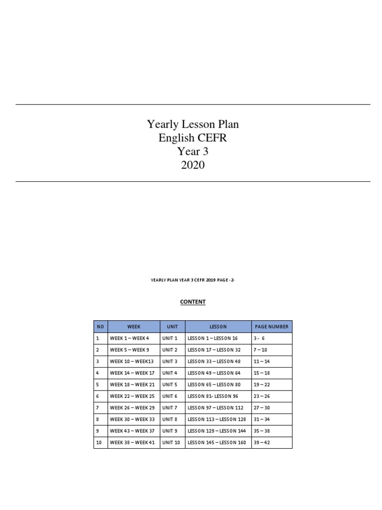 Scheme Of Work Year 1 Cefr 2020
