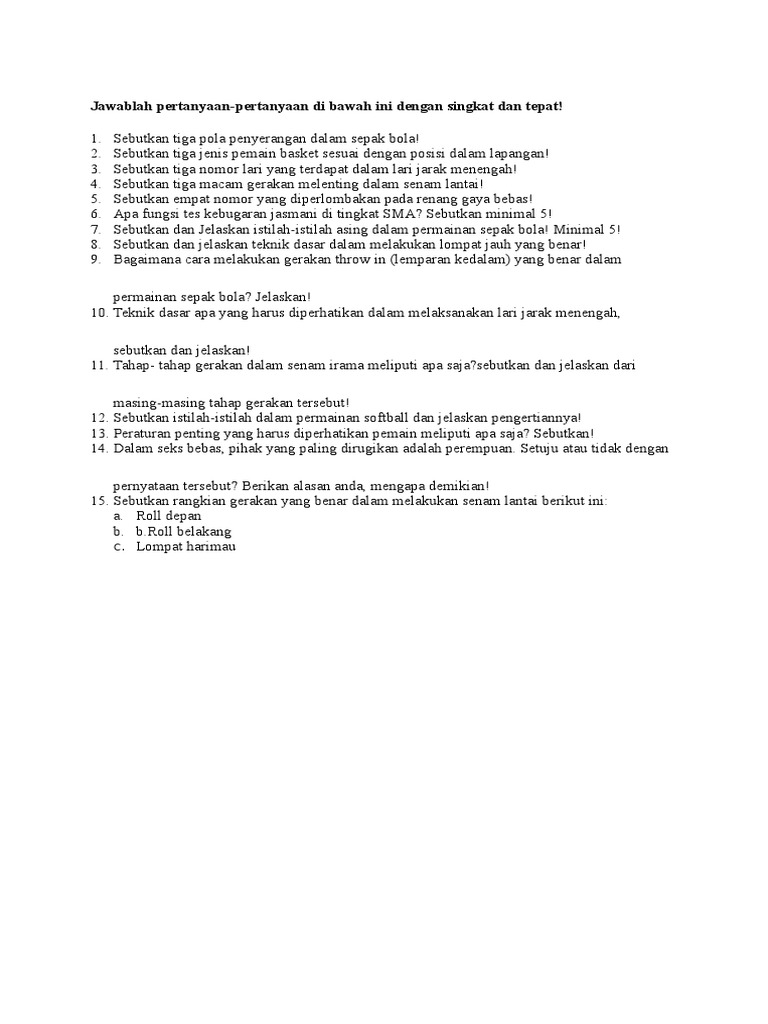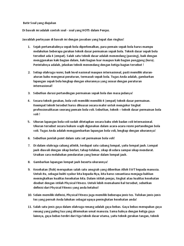 Soal Penjasorkes