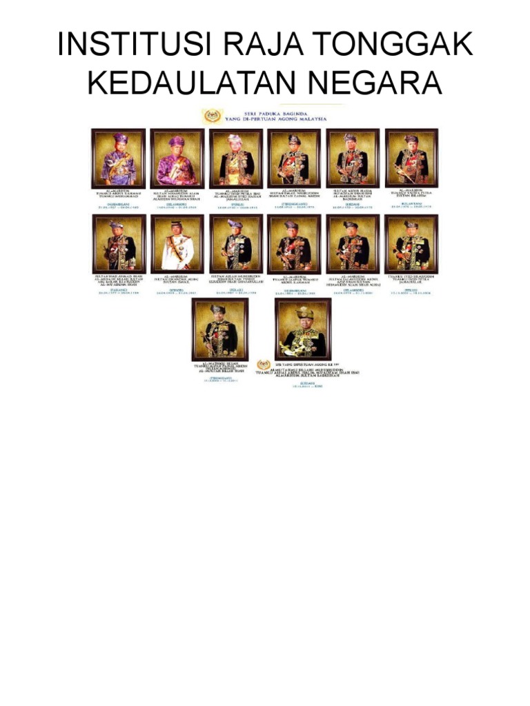 Peranan institusi raja raja melayu menurut perlembagaan dalam memelihara kedudukan islam dari perspektif pendidikan sejarah nazri muslim pusat pengajian umum universiti kebangsaan malaysia nazrim ukm my abstrak pemerintahan beraja telah sedia wujud dalam sistem sosial di negeri negeri melayu sejak berabad abad lamanya. Sejarah di peringkat sekolah dan kursus pengajian malaysia atau kenegaraan malaysia di peringkat institusi pengajian tinggi namun unsur unsur tradisi ini terus menjadi polemik dalam masyarakat yang memperlihatkan langkah tersebut masih belum mampu menjelaskan perkara ini. Satu persoalan yang saya kira kurang ilmiah walaupun saya bukanlah seorang yang arif. Penyandang yang dilantik adalah ybhg.