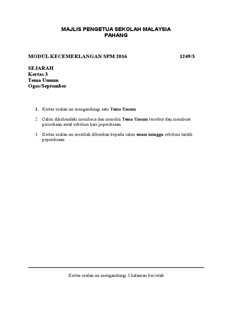 Tema Umum Sejarah Kertas 3 Spm 2020 Tajuk Dan Arahan Calon
