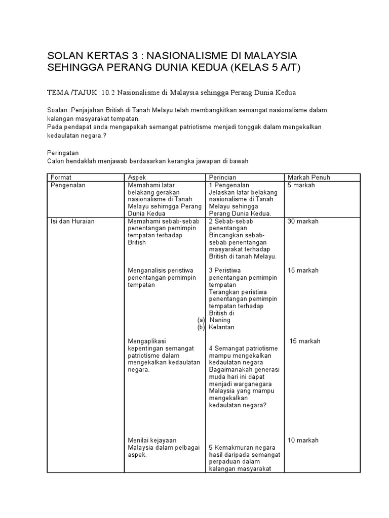 Sejarah Kertas 3 Bab 2 Tingkatan 5 Nasionalisme Di Malaysia Sehingga Perang Dunia