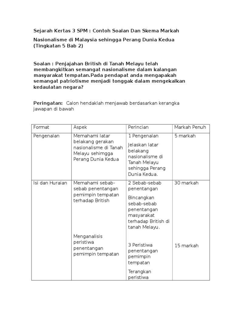 Sejarah Kertas 3 Bab 2 Tingkatan 5 Nasionalisme Di Malaysia Sehingga Perang Dunia