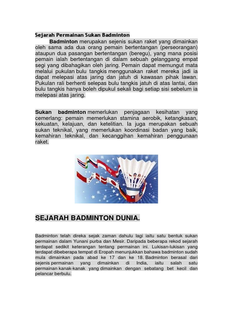 Doc Sejarah Badminton Dunia Najmi Ff Academia Edu