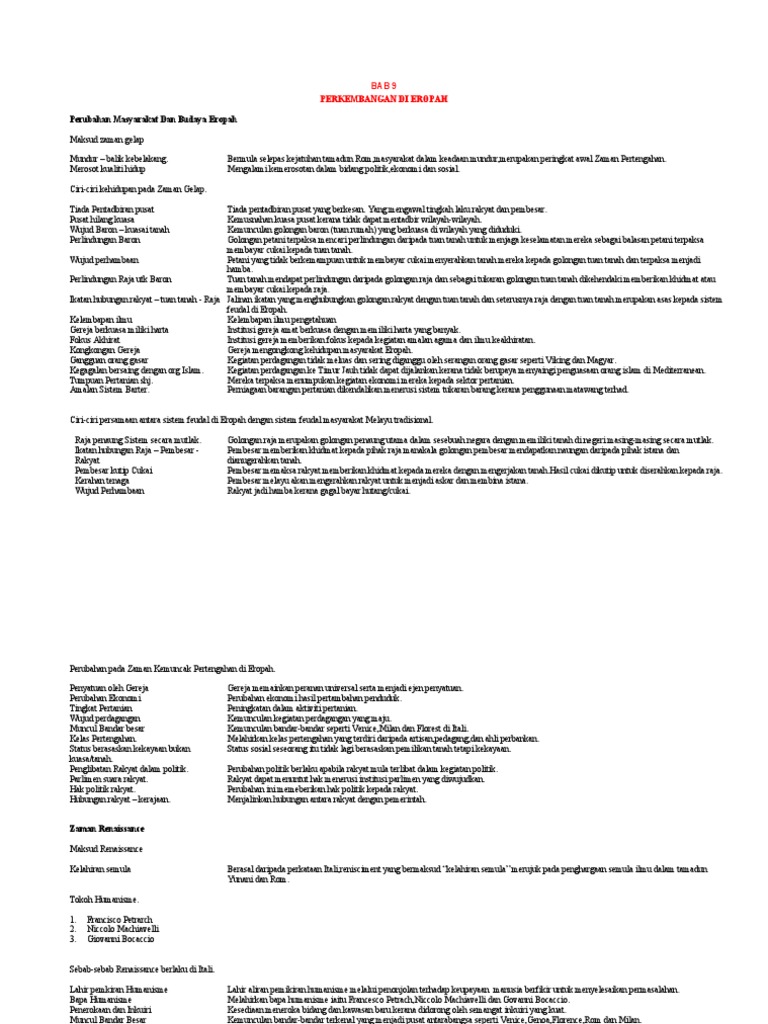 Nota Sejarah Tingkatan 4 Bab 9 Perkembangan Eropah Permohonan My