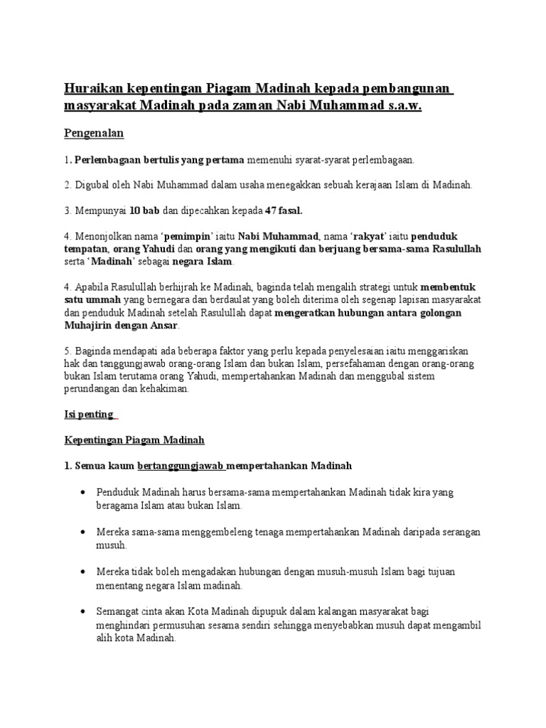 Soalan Esei Sejarah Tingkatan 4 Piagam Madinah J Kosong W