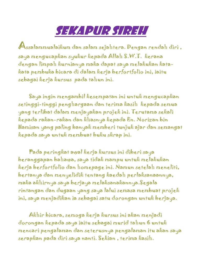 Sekapur sireh buku skrap sekolah rendah. Dskp kssr semakan 2017 tahun 3 ini adalah untuk tujuan penyebaran bagi tahun 2018 pelaksanaan kssr semakan 2017 tahun 3 adalah pada tahun 2019 sila rujuk surat pekeliling ikhtisas kpm bil. Oleh yang demikian saya sangat berharap semoga barisan pendidik di sekolah ini akan mempertingkat kegigihan dan bakti mulia untuk sentiasa menjana kecemerlangan sekolah ini ke mercu yang lebih cemerlang gemilang dan terbilang. Pesta buku antarabangsa kuala lumpur kali ke 33 tahun 2014 6 years ago. Contoh sekapur sirih untuk buku skrap sejarah contoh sekapur sirih untuk buku skrap kemerdekaan contoh sekapur sirih untuk buku skrap kreatif contoh sekapur sirih.