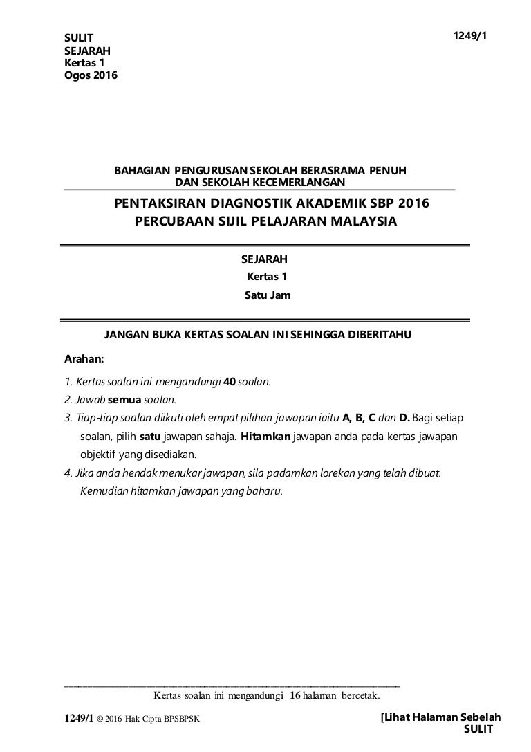 Pdf Pentaksiran Diagnostik Akademik Sekolah Berasrama Penuh 2016 Peperiksaan Percubaan Soil Pelajaran Malaysia Pei Xuan Academia Edu