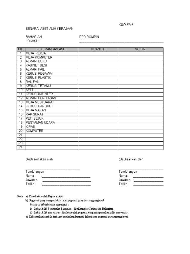 7 Kew Pa 7 Senarai Aset Di Lokasi Kelas 2i Doc Kew Pa 7 Senarai Aset Alih Kerajaan Bahagian Smk Asyakirin Bintulu Lokasi Kelas 21 Bil Keterangan Aset Course Hero