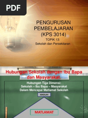 Topik 13 Sekolah Dan Persekitaran Pengurusan Pembelajaran Kps 3014