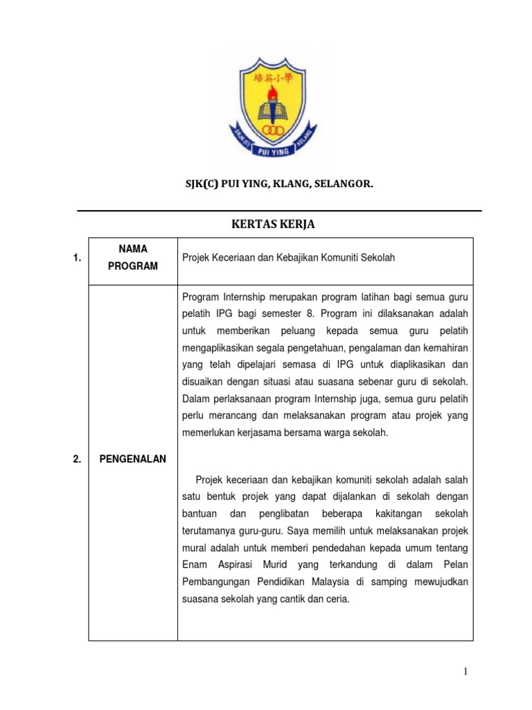 Kertas Kerja Projek Mural Sjkc Pui Ying