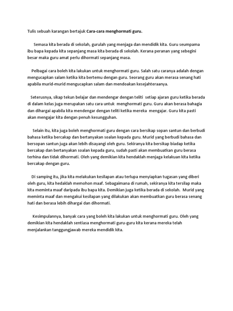 Contoh Karangan Cara Cara Menghormati Guru Jawkosa