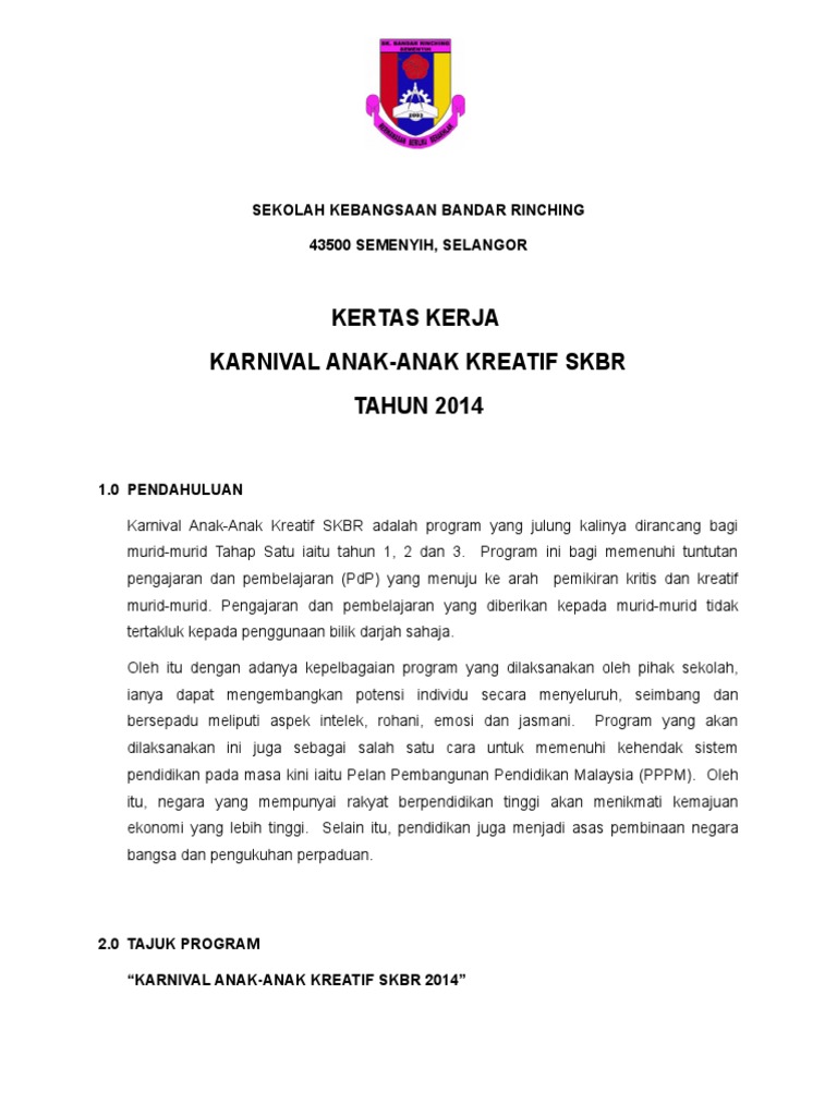 Kertas Kerja Karnival Anak2 Kreatif Utk Skbr