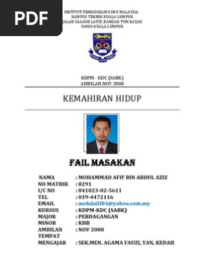 Kemahiran Hidup Kdpm Kdc Sabk Ambilan Nov 2008