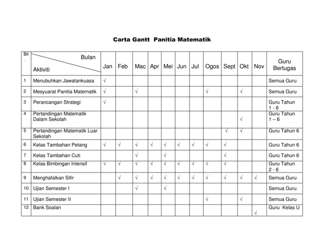 Perancangan Aktiviti Tahunan Panitia Matematik Tahun 2013 1